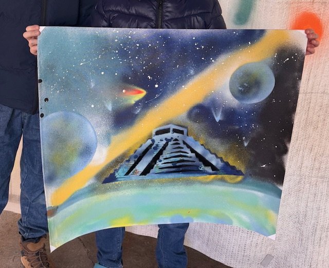 Mit echter Sprühkunst zauberst du unter fachkundiger Anleitung eines Profis dein eigenes Weltall auf die Leinwand! Mit sicherer Ausrüstung und cooler Technik entsteht dein ganz persönliches Universum zum Mitnehmen.