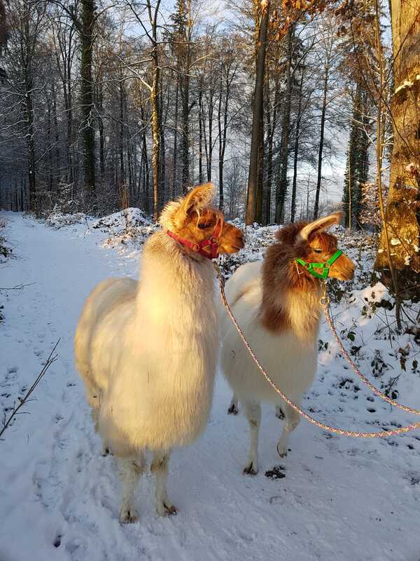 Kurze Information über die Lamas und Handling während des Spaziergangs. Wir sind ca. 1,5 Stunden unterwegs im Wald im Steinenbühl. Nach der Rückkehr auf den Bauernhof dürft ihr die Lamas noch füttern.
