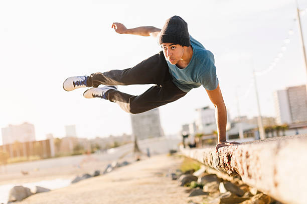 Bei der Sportart Parkour ist es das Ziel, möglichst effizient von A nach B zu gelangen. Dabei werden die Hindernisse mit verschiedenen Bewegungen überwunden.