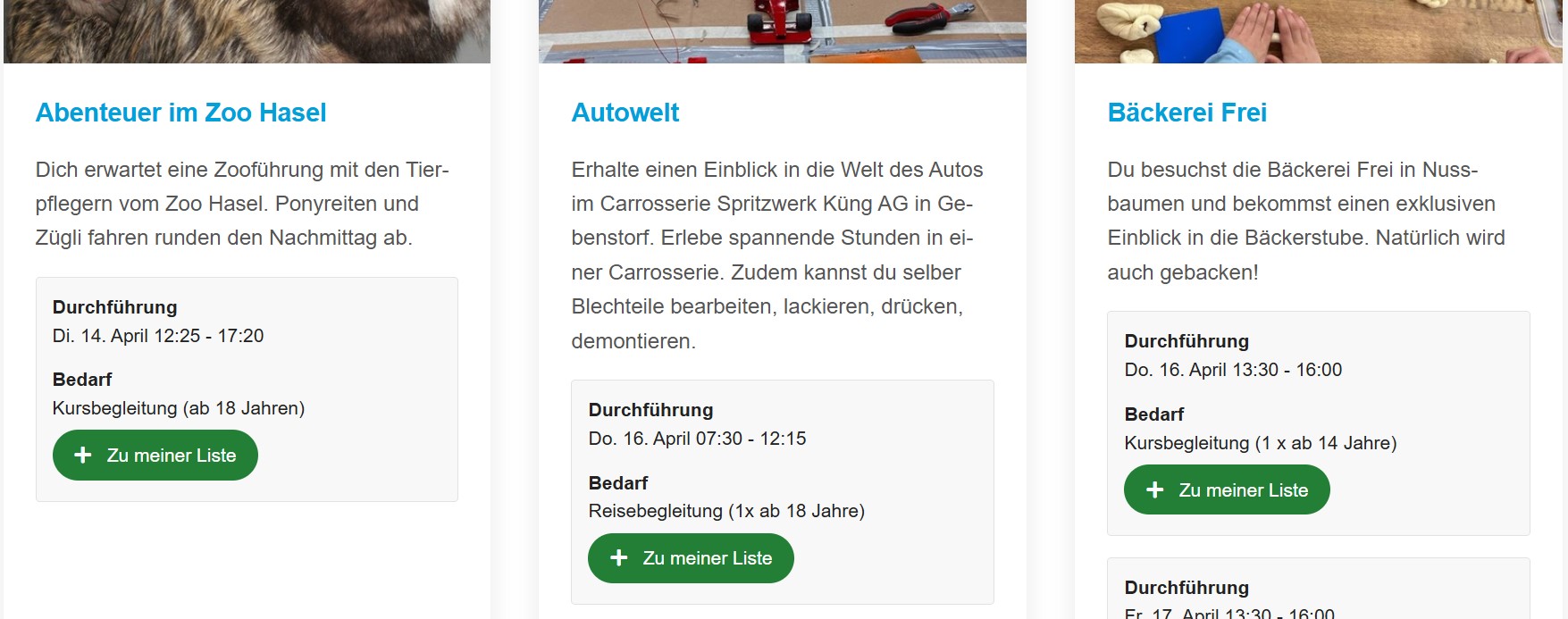 Wähle alle Angebote, die du begleiten möchtest, aus, indem du auf "zu meiner Liste" klickst.